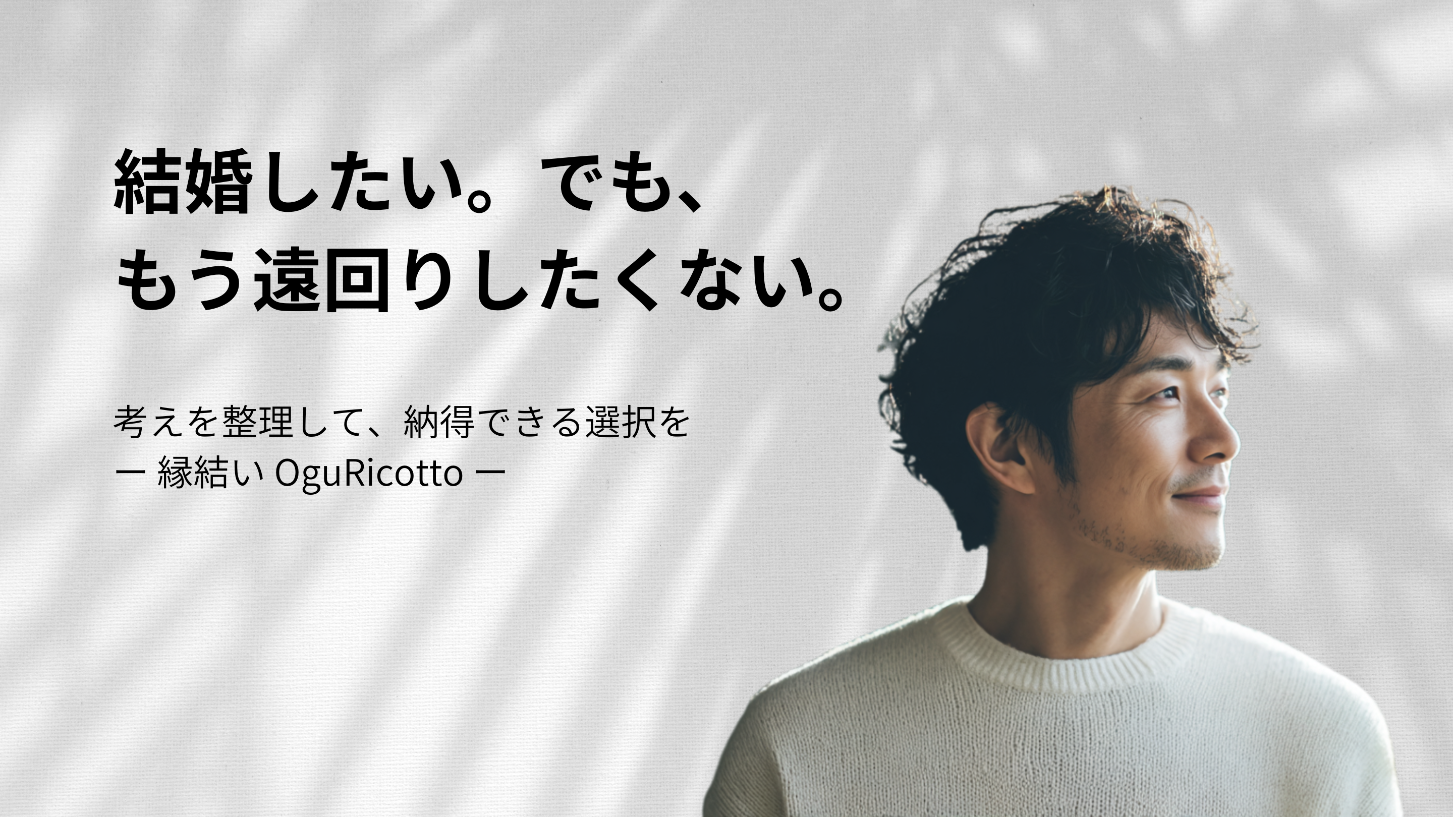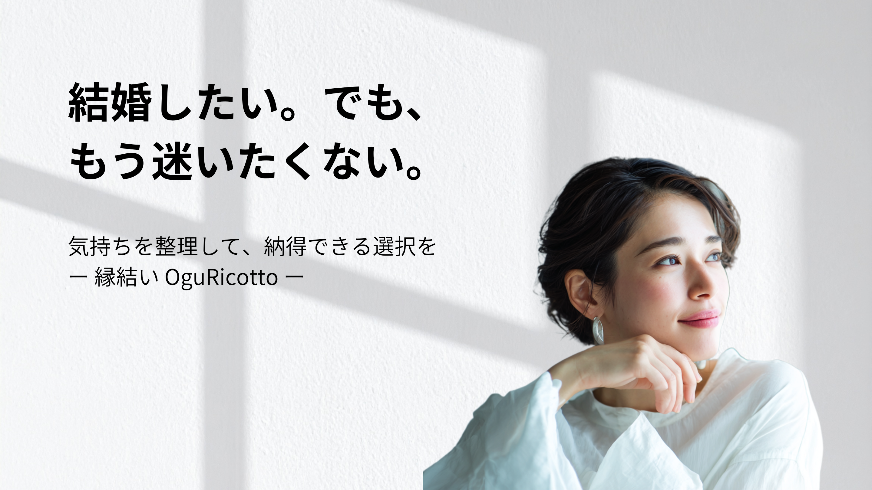 縁結い OguRicottoは、結婚をゴールにするのではなく、人生の選択として結婚に向き合うための人生伴走型結婚相談所です。